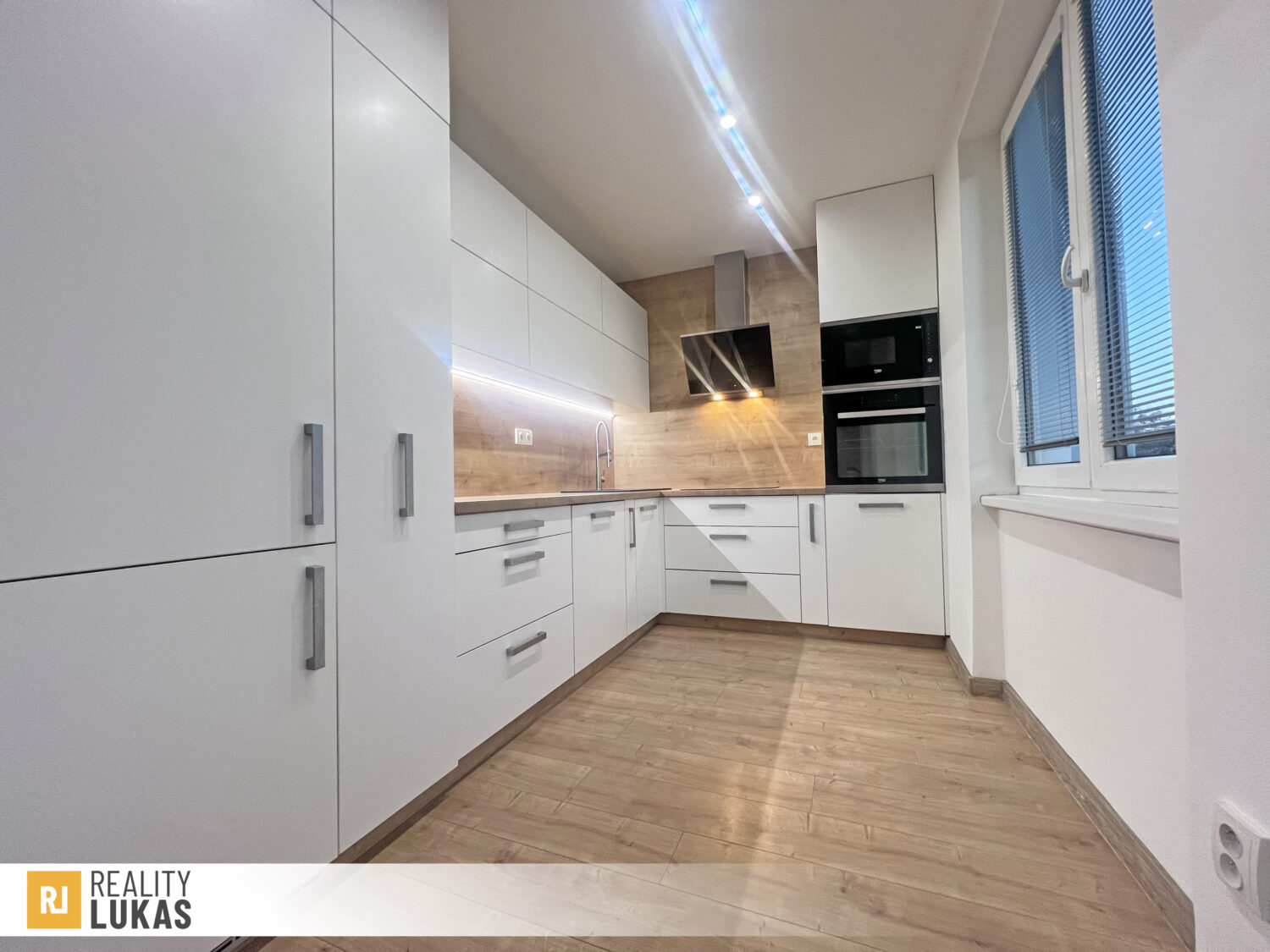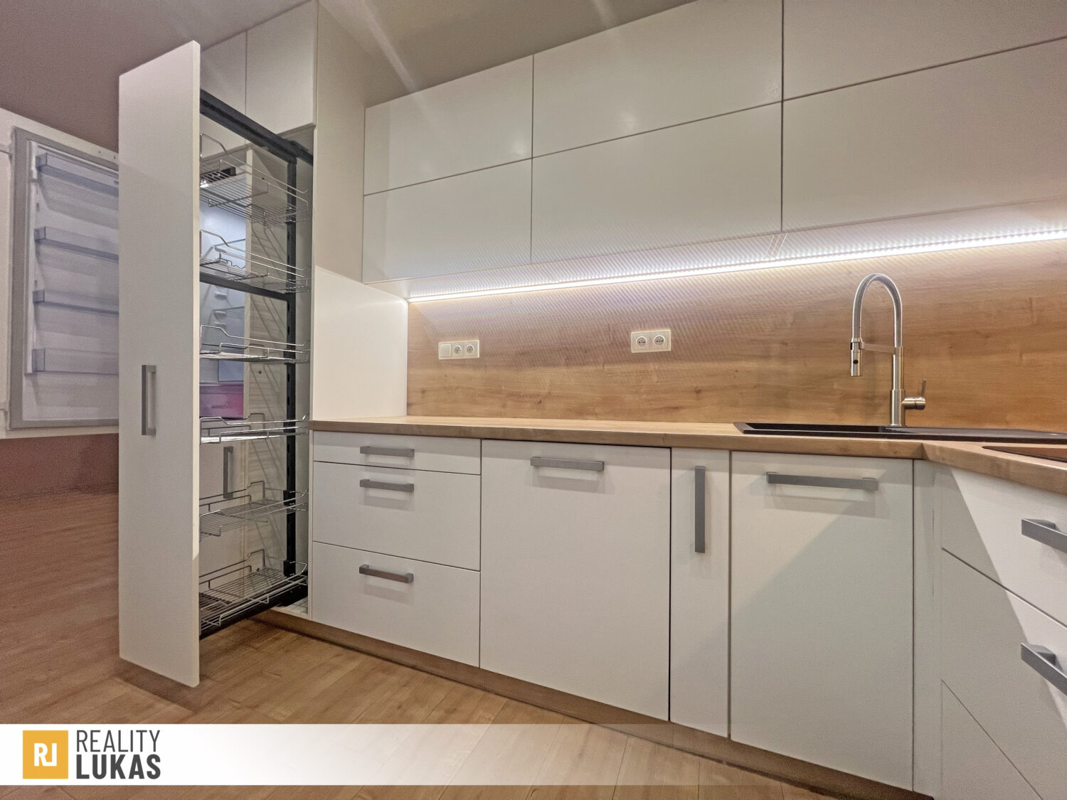 Byt se nachází ve 2. patře z pěti pater panelového domu s výtahem. Prošel kompletní a kvalitní rekonstrukcí, při které bylo zvětšeno bytové jádro a propojen obývací pokoj s kuchyní, čímž vznikl prostorný a praktický obytný prostor.